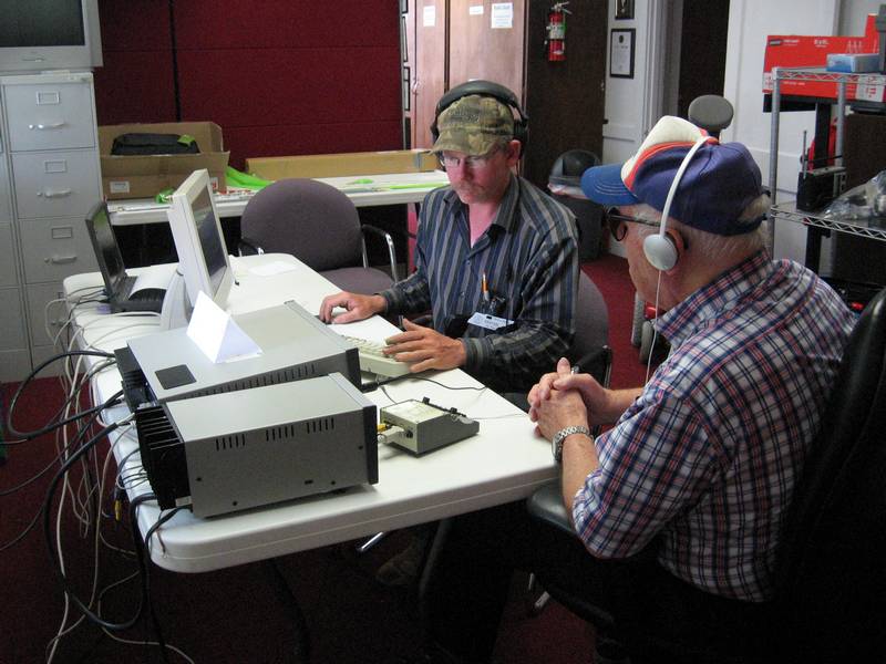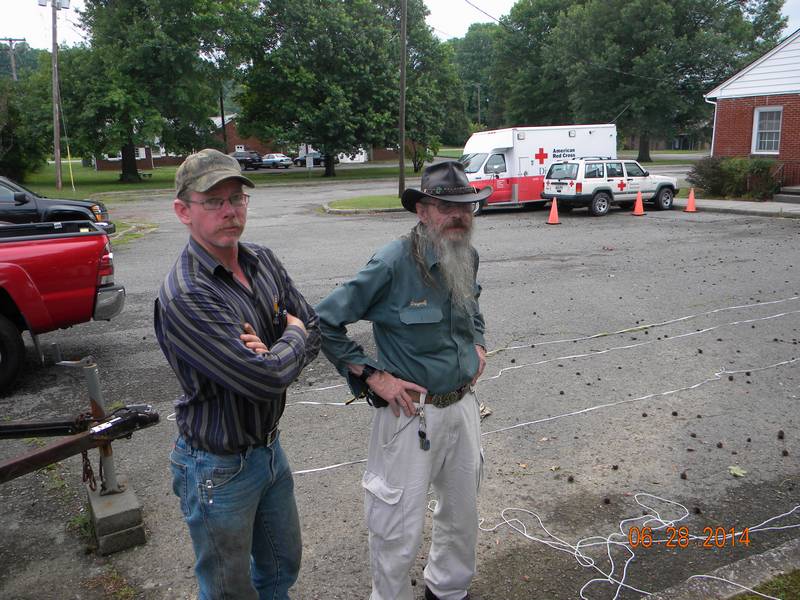 Charlie Hargis, Ross Hargis, Jim Lux. Food being put out for the feast.